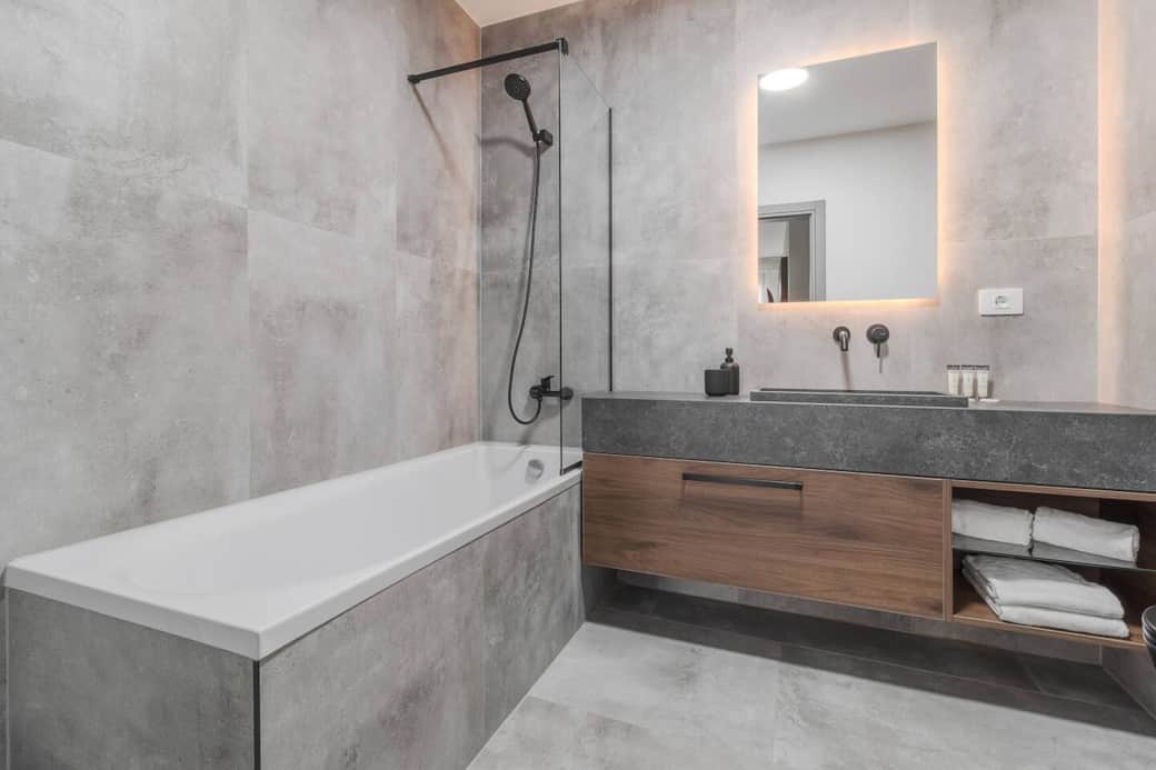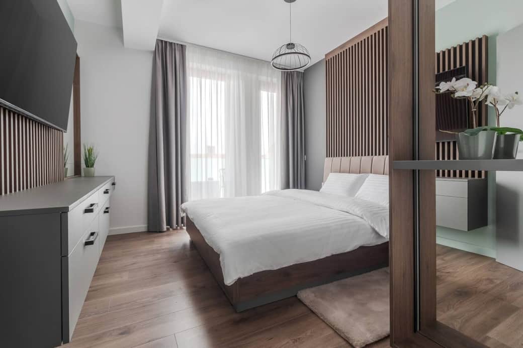 It features an elegant living room and fully equipped kitchen, a comfortable sofa to unwind after a busy day, 2 beautifully designed bedrooms with premium bedding and plenty of storage space, 2 bathrooms where you can start your day with a refreshing shower or relax in the evening with a bath.